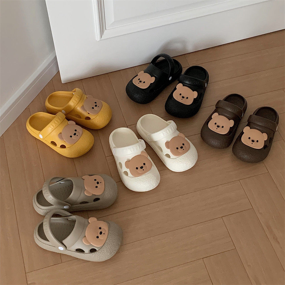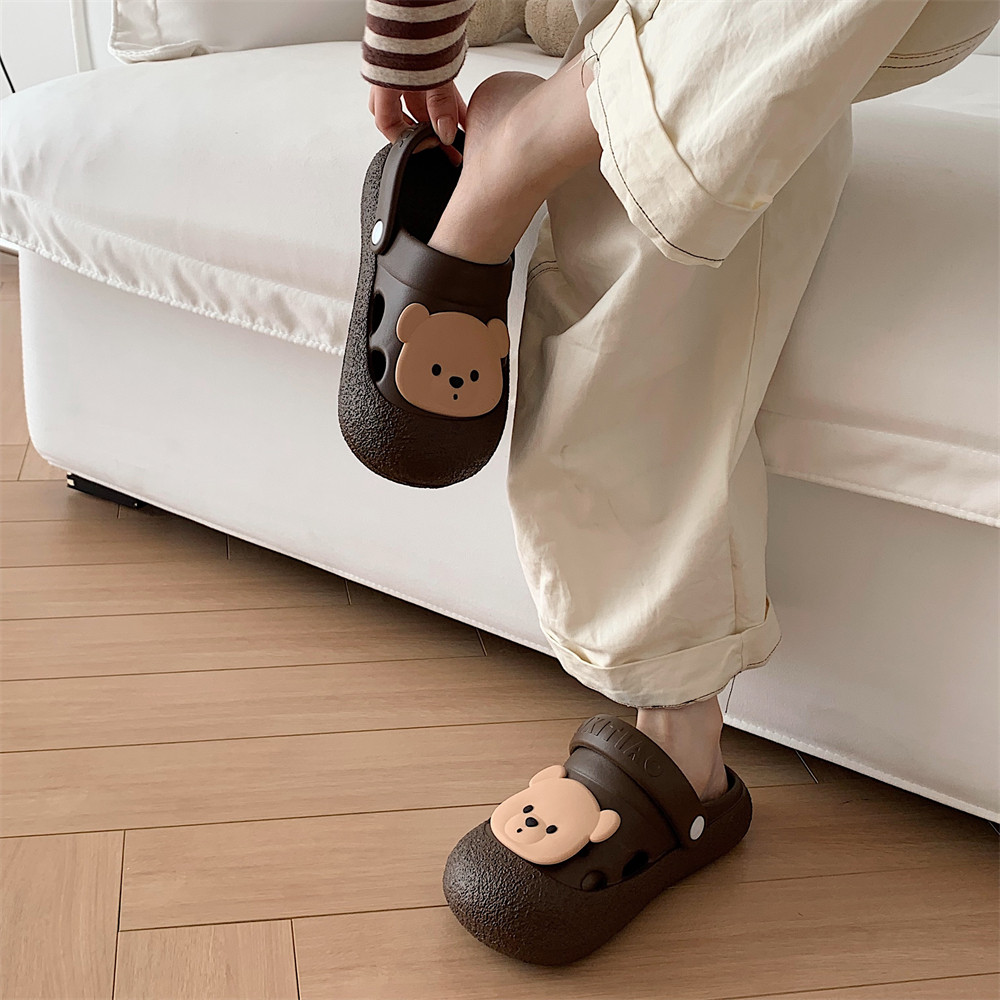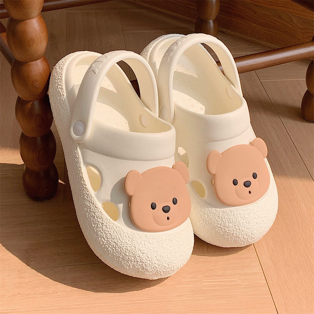 细细条软底防滑可爱小熊夏季凉拖鞋学生百搭卡通女士洞洞鞋平底
