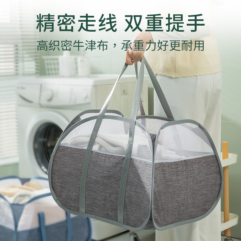特大号双格折叠牛津布脏衣篮家用脏衣服收纳框 浴室换洗衣服篮子