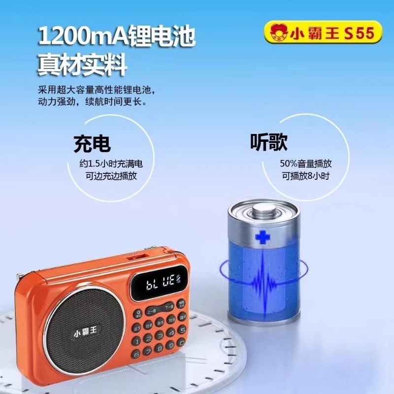 小霸王S55老人插卡收音机小型口袋充电插卡蓝牙音响MP3外放播放器