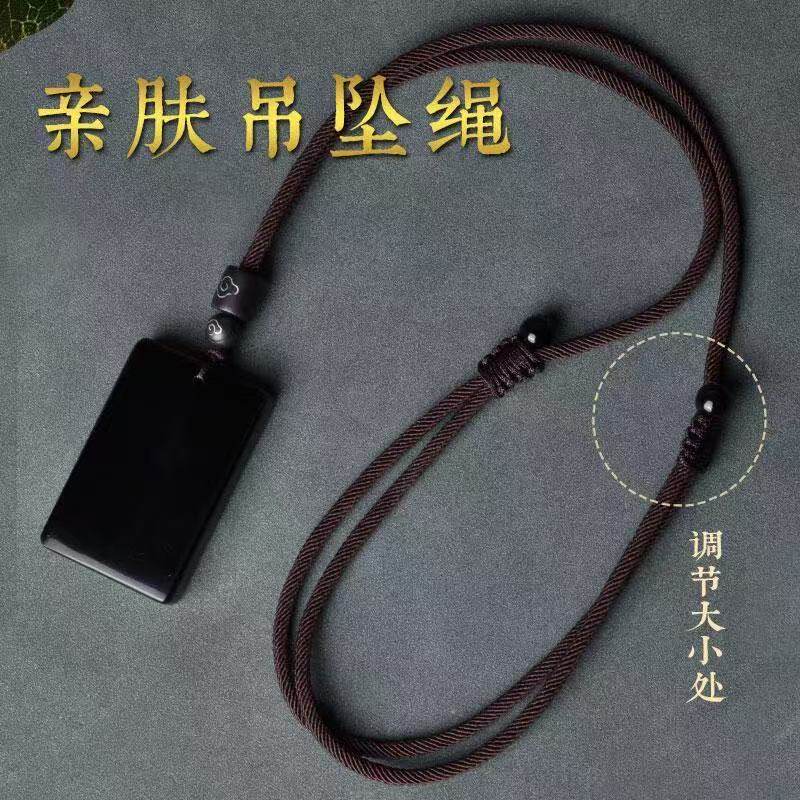 普陀山黑曜石无事牌吊坠女天然护身符项链平安符送男朋友的礼物