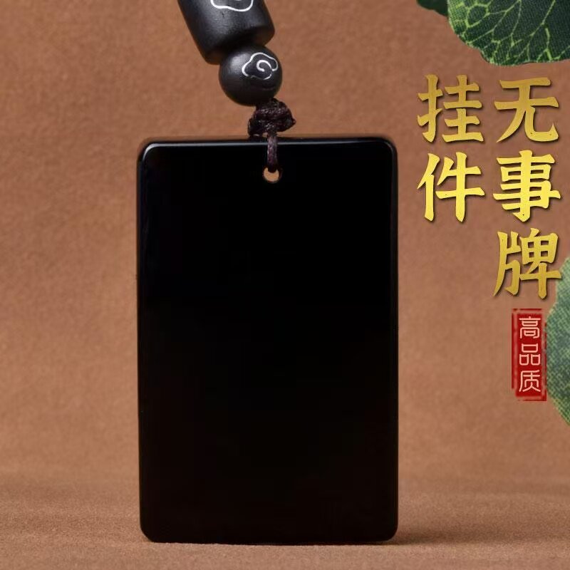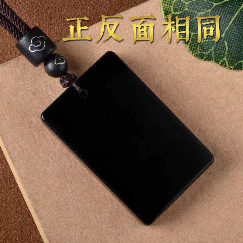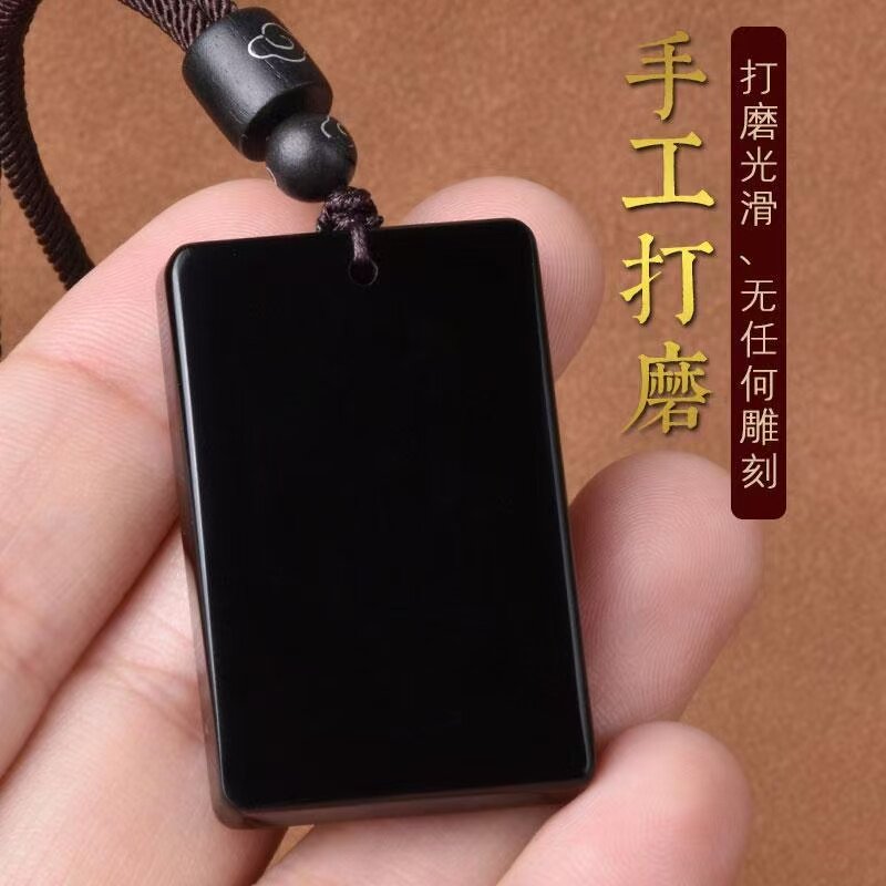 天然黑曜石平安无事牌吊坠男女补水本命年护身符吊坠方牌吊坠正品