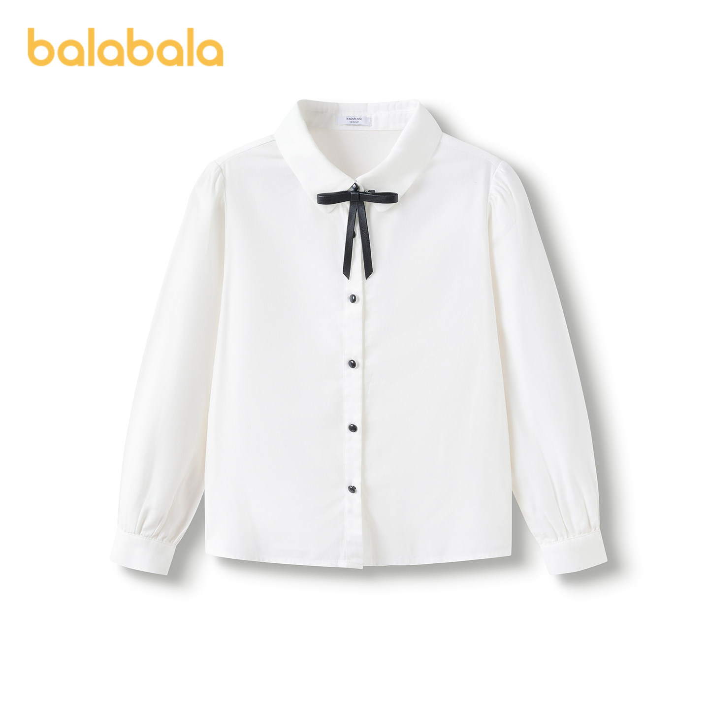 巴拉巴拉儿童长袖衬衫女童春装中大童学院风棉感白色衬衣柔软舒适