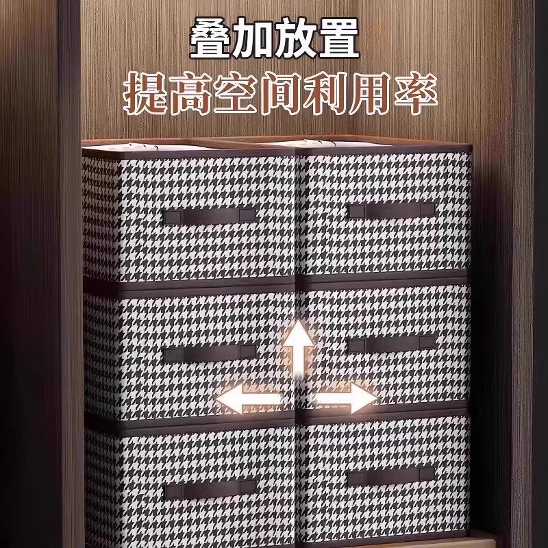 衣服收纳箱千鸟格家用衣柜分层整理收纳神器放衣物布艺折叠收纳筐