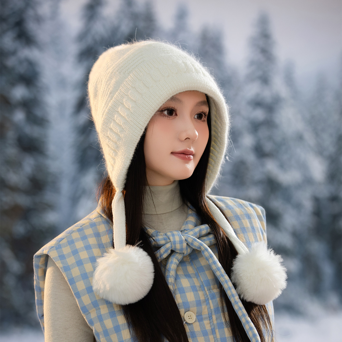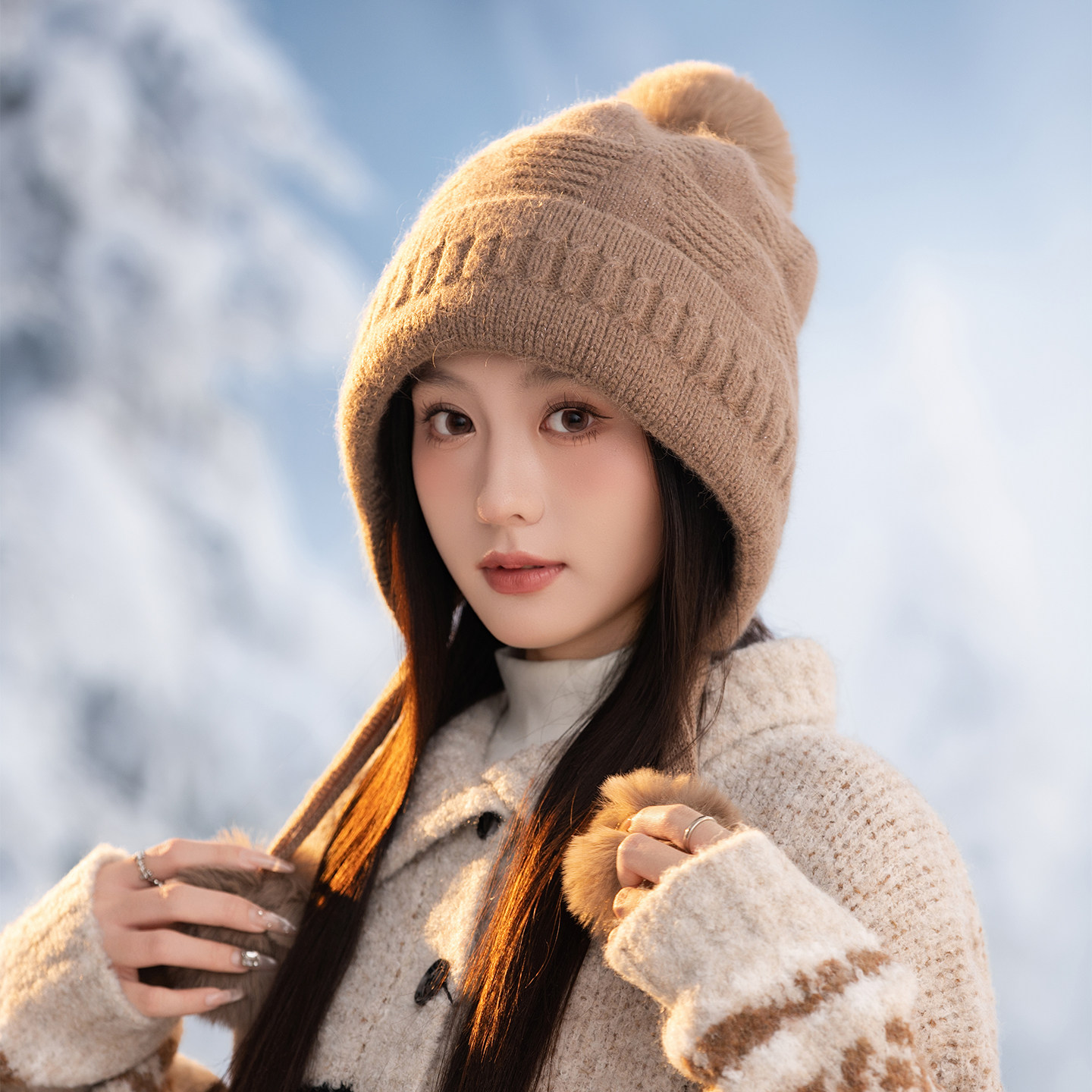 针织保暖帽子女冬季加绒厚护耳包头帽防寒风雷锋帽户外骑行东北J