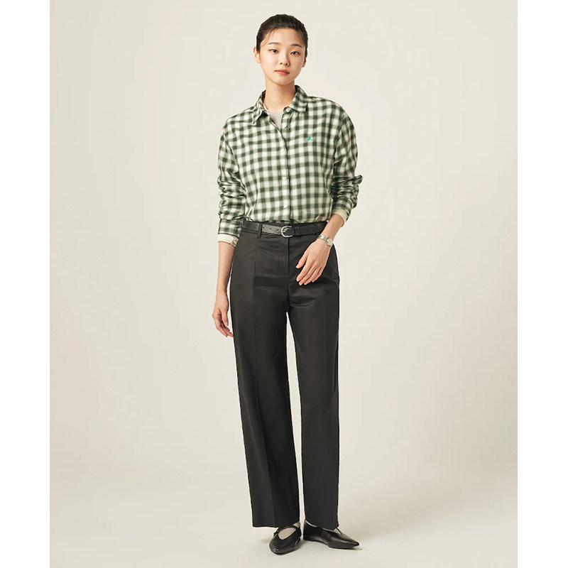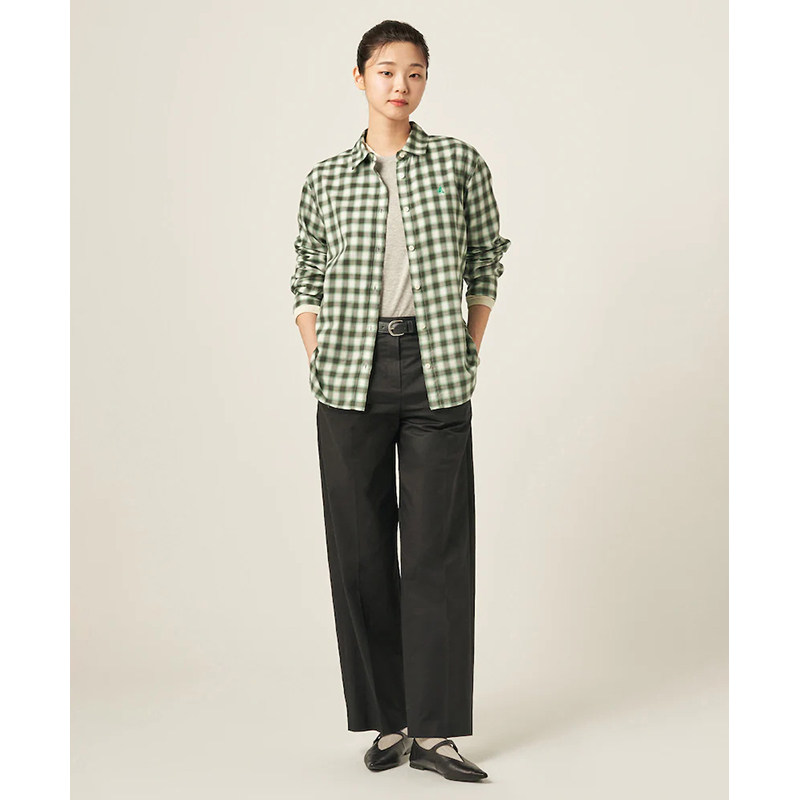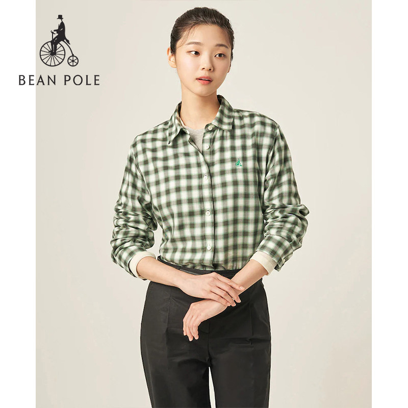 BEANPOLE滨波春夏女士绿色渐变色格子纹刺绣LOGO简约休闲长袖衬衫