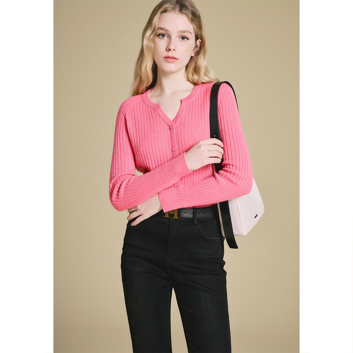 【100%山羊绒】诗篇专选无缝一体v领条纹毛衣毛针织衫冬款