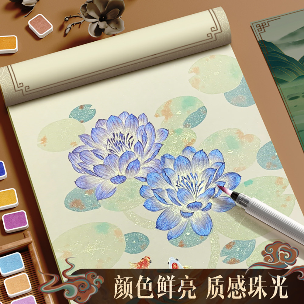 敦煌珠光水彩固体彩绘颜料画画工具套装美术生专用儿童小学生白色水粉美甲用24色便携式分装盒国画12色48色