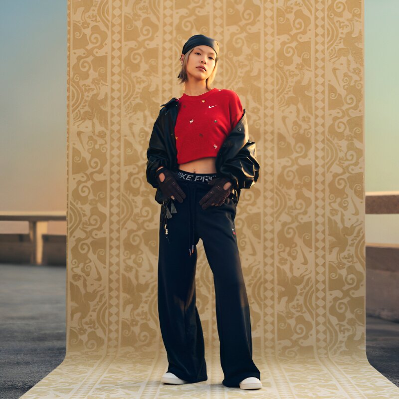 耐克女裤CNY新年款马年限定款刺绣logo直筒阔腿长裤IQ3829 IQ3829