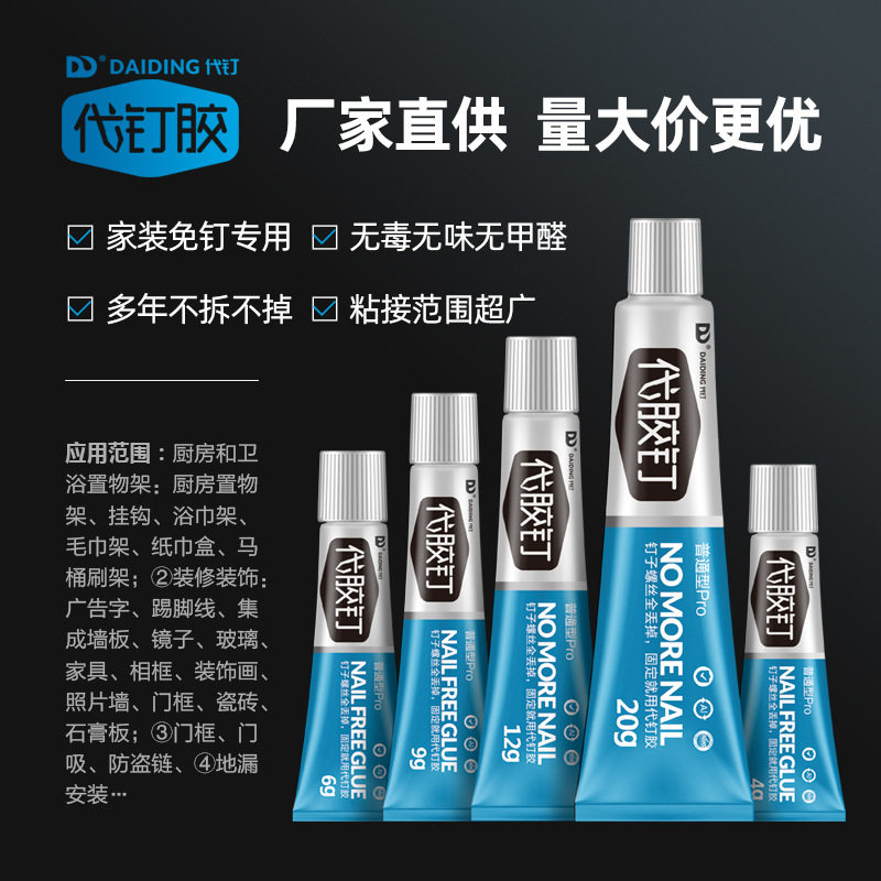 免钉胶强力代钉胶墙面粘贴厨房夹单器菜单夹挂单器粘贴免打孔比挂钩牢固瓷砖玻璃防水密封木工踢脚线胶水
