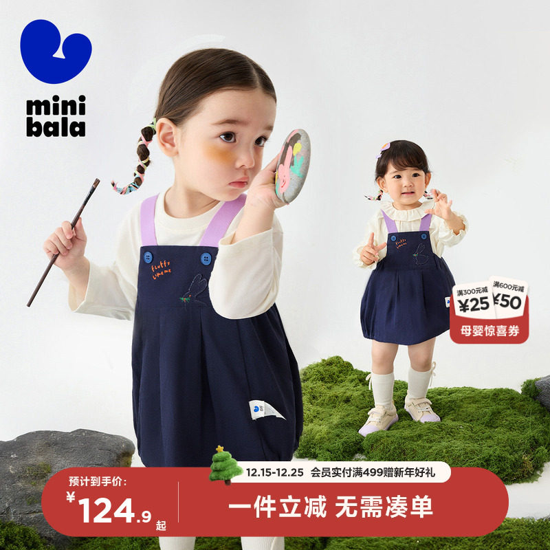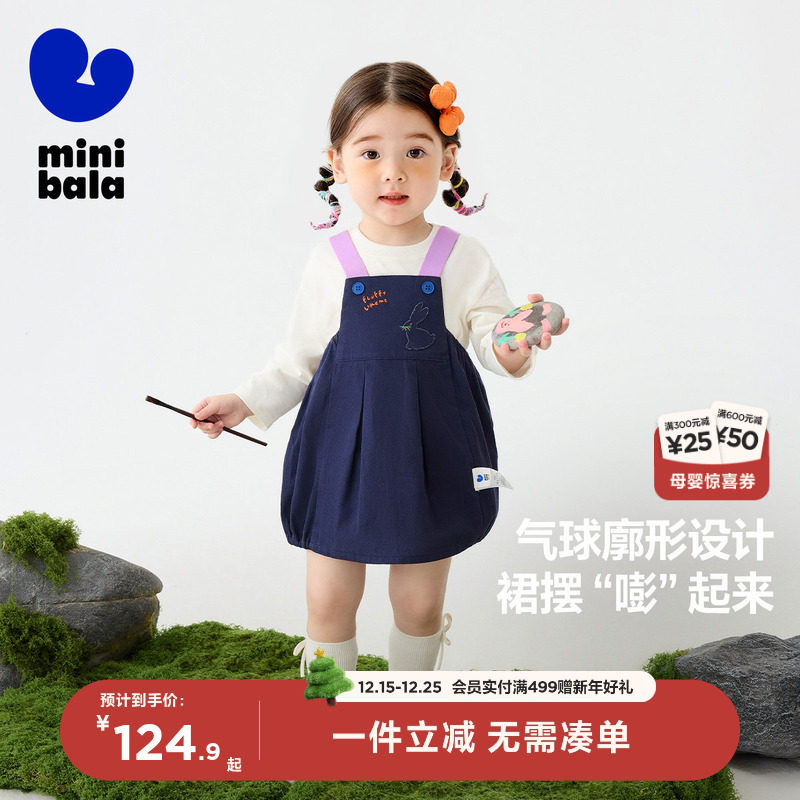 迷你巴拉巴拉背带裙女童宝宝全棉宽松刺绣甜美仿牛仔气球2025秋