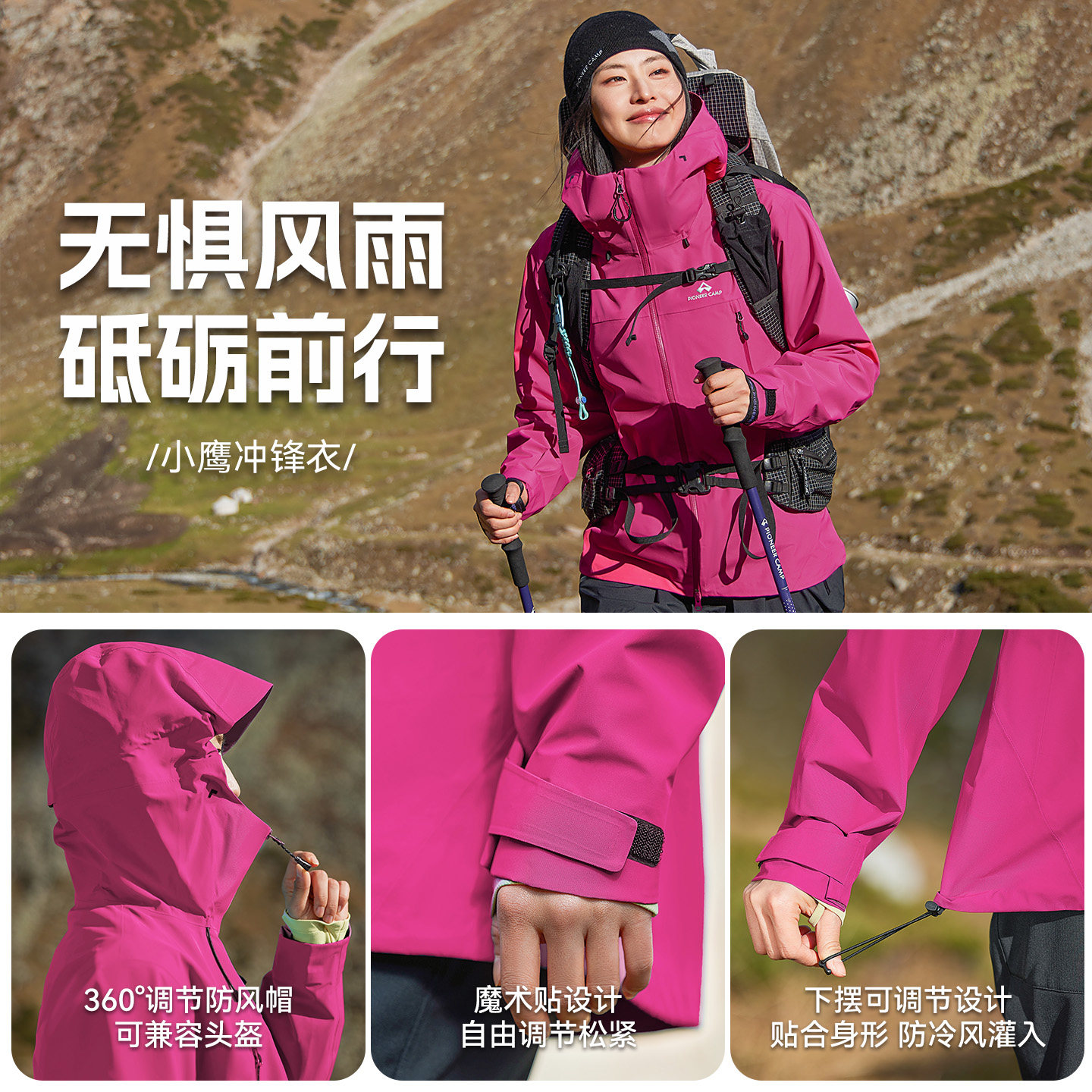 明星同款【小鹰冲锋衣】拓路者东丽全天候硬壳雪山单冲登山服女