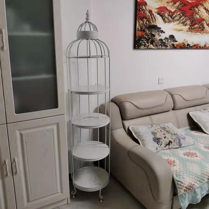 网红新欧花室内厅落式多层物架饰件北铁艺架阳台客地鸟笼置轻奢装