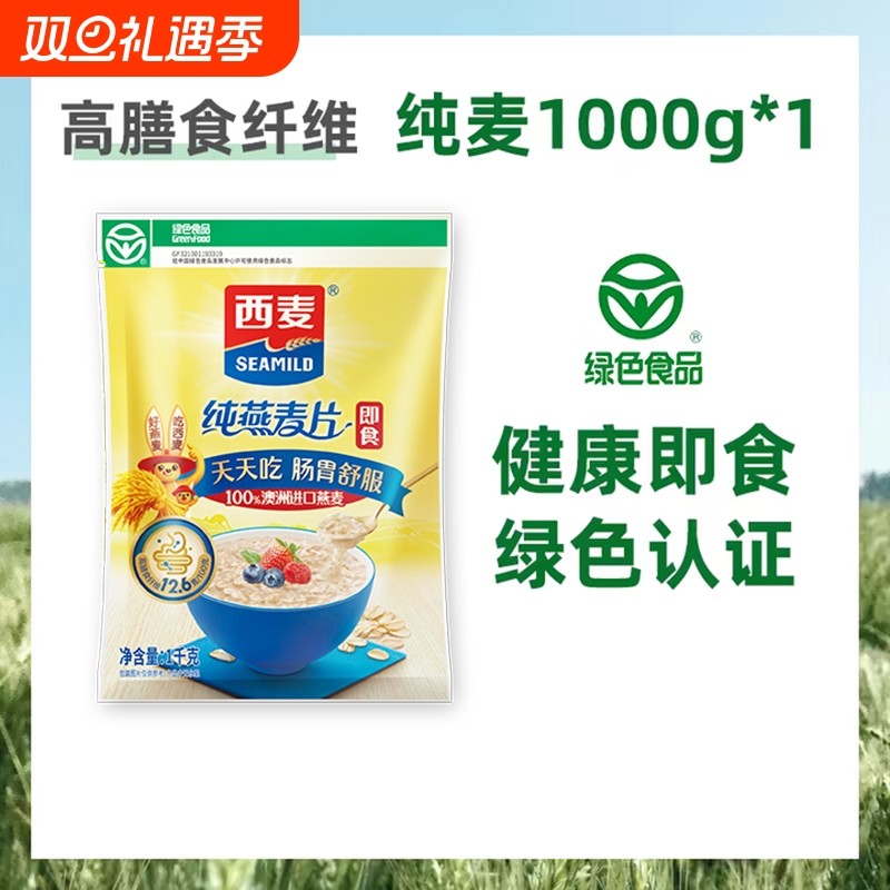 西麦即食纯燕麦片1000g袋装冲泡高膳食纤维代餐营养早餐冲饮谷物
