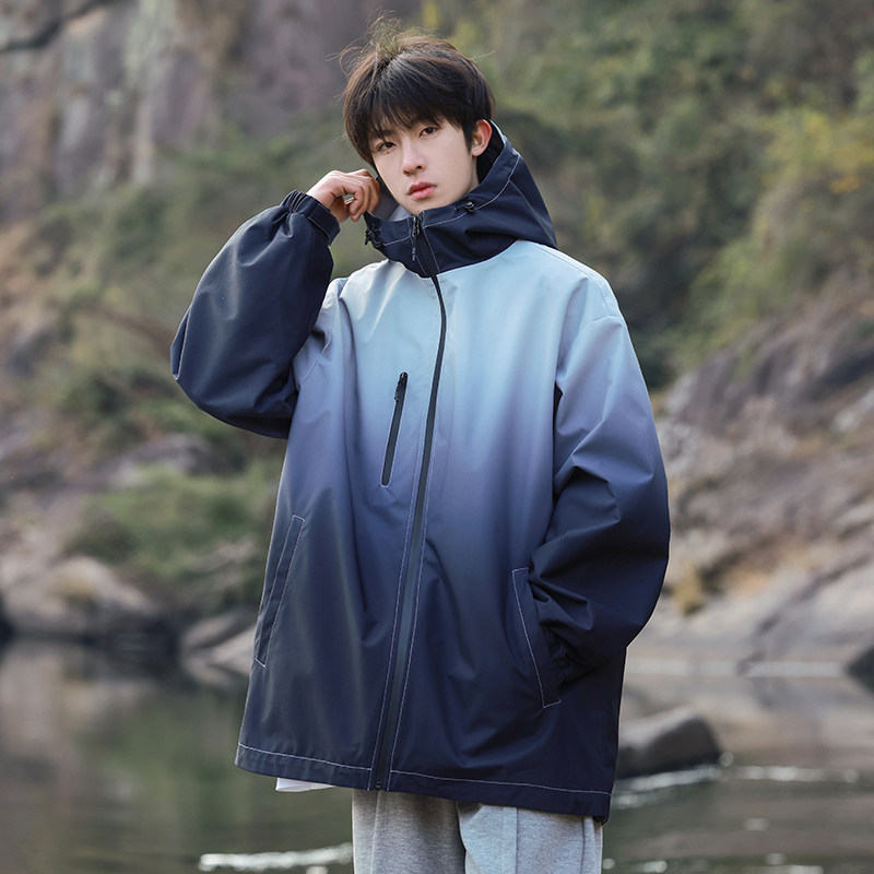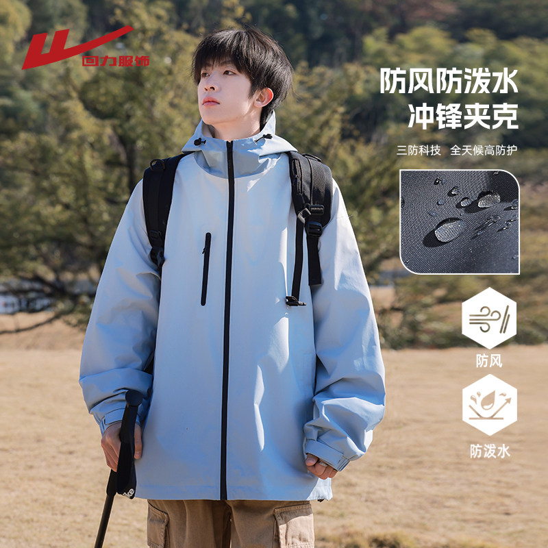 回力渐变冲锋外套男士春秋2025新款青少年户外防风衣男生休闲夹克