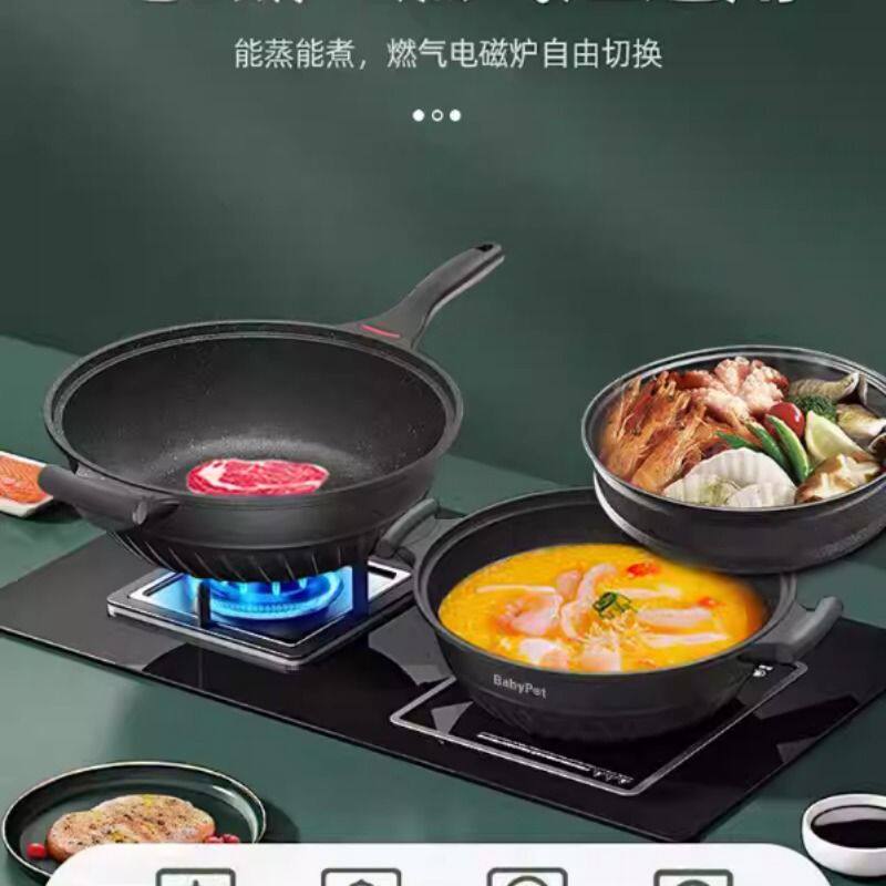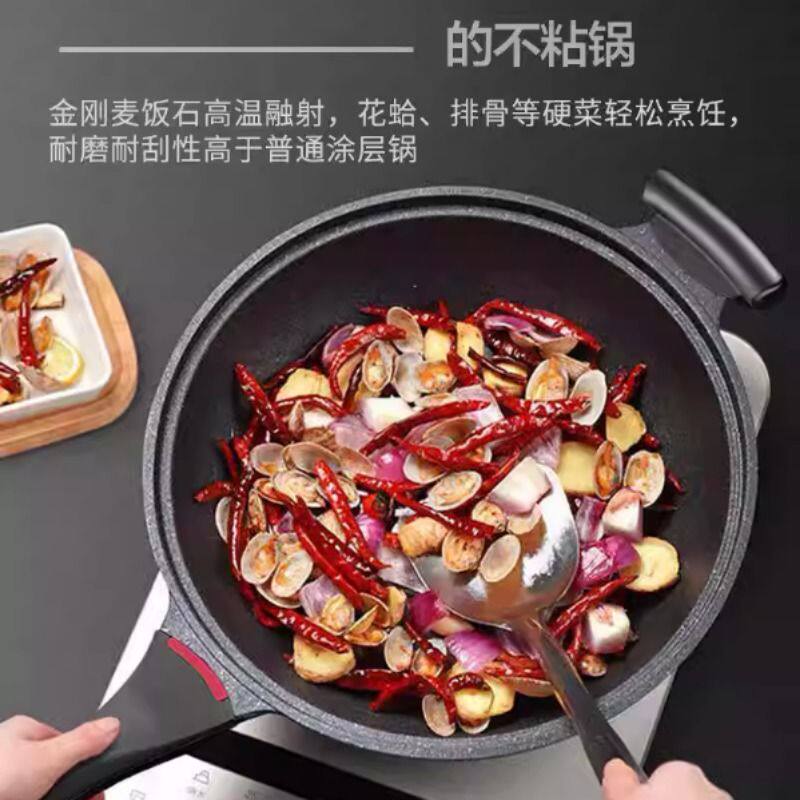 麦饭石不粘锅炒锅家用电磁炉燃气灶专用多功能微压一体不沾炒菜锅