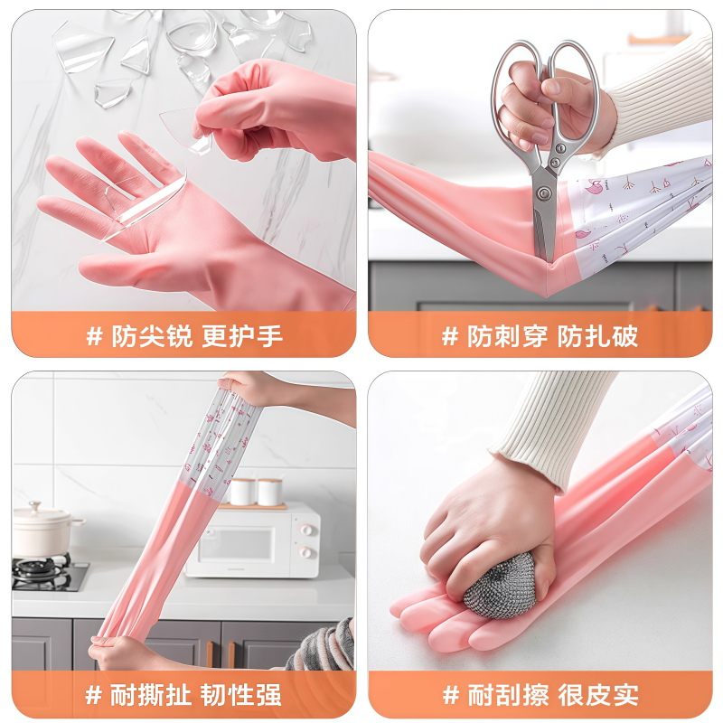 钢丝洗碗手套加长防水清洁隔热烫厨房刷碗女家用家务加厚耐用刷锅