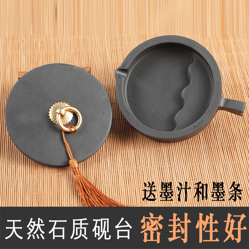 轩义堂澄泥砚台带盖天然安徽歙砚文房四宝端砚墨碟砚池墨盘墨盒成人初学者学生毛笔书法用品套装送墨条墨汁