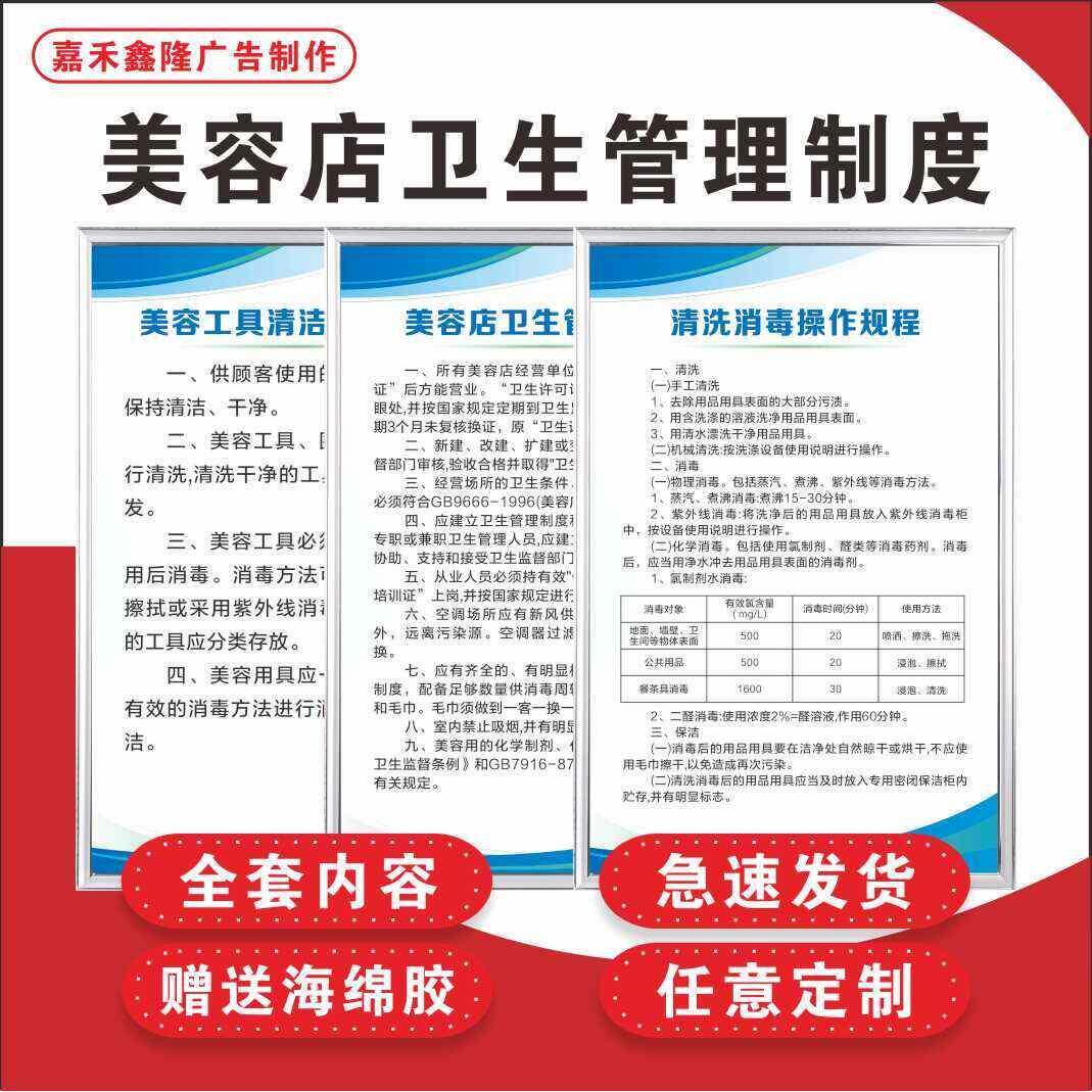 美容院卫生管理制度美容工具清洁消毒操作流程制度海报挂图定制
