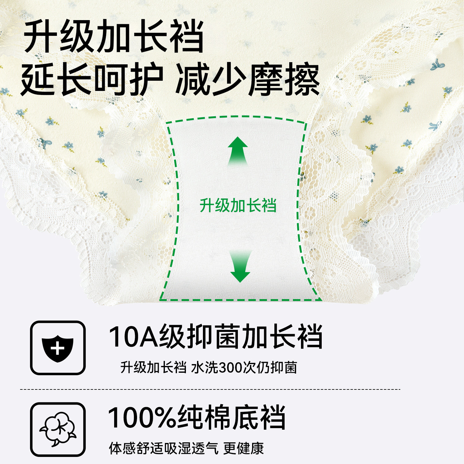 黛尔佳人无菌内裤女士2026新款纯棉抗菌全棉加长裆无痕少女三角裤