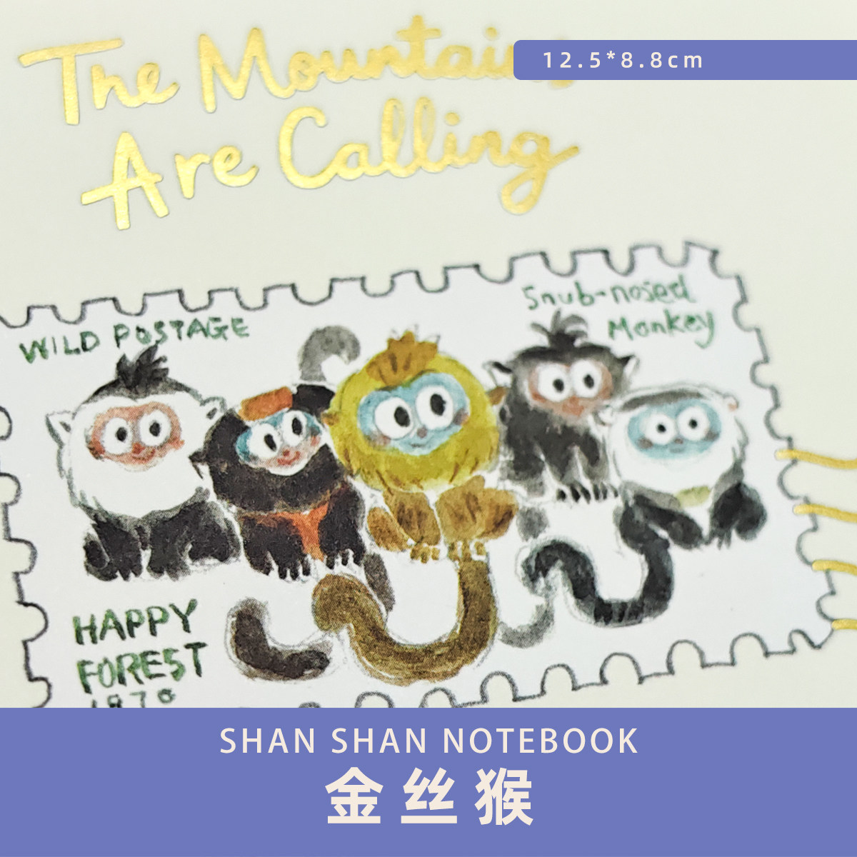 山山空间_横版口袋笔记本子_世界动物3邮票烫金空白页手帐集盖章