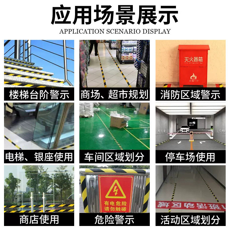警示胶带黑黄斑马线地标地面标识划线黄色车间警戒安全贴分区隔离定位贴消防通道地板装修地膜耐磨彩色PET