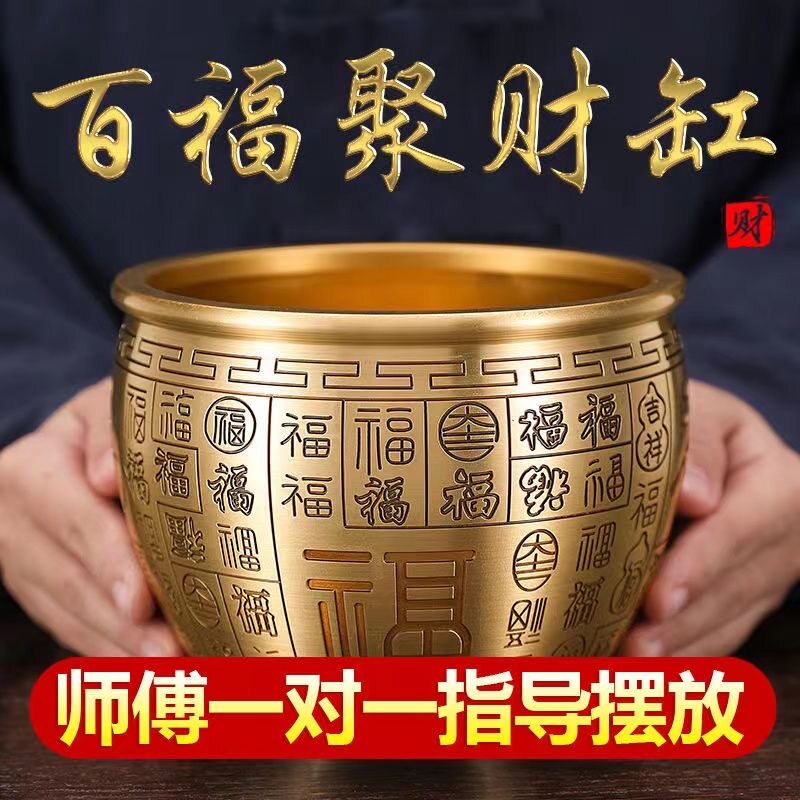 黄铜聚摆宝件盆百福铜缸实心家居客厅店铺开业送礼乔迁办公正品摆