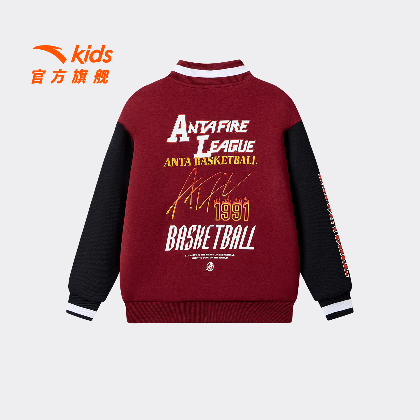 安踏儿童外套男大童篮球运动衫2025冬装款宽松棒球服学院风外套潮
