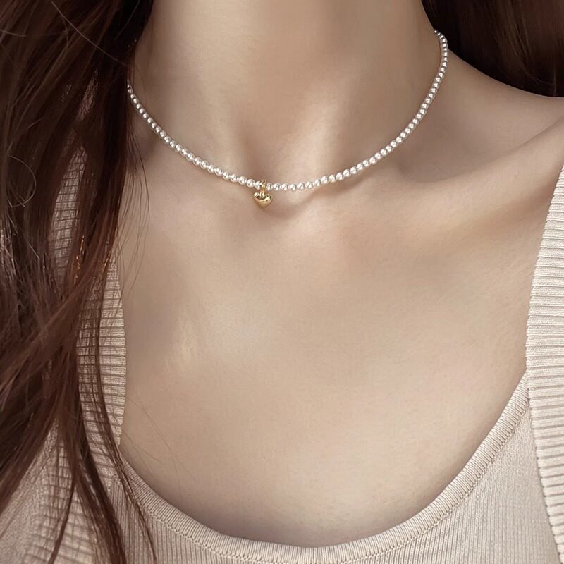 珍珠项链3mm施家小米珠珍珠项链女生款爱心2025新款颈链生日礼物