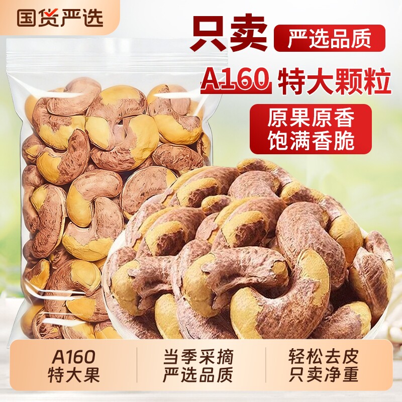 A160特大带皮紫皮腰果仁熟原味500g盐焗坚果越南特产孕妇零食年货