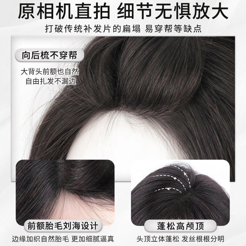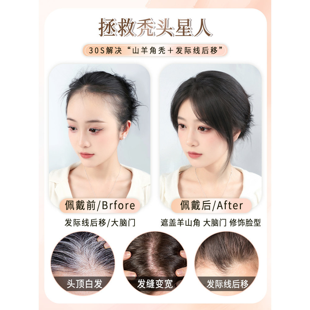 胎毛八字刘海假发女片头顶真发轻薄自然前额鬓角补发发际线假发贴