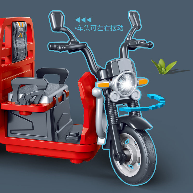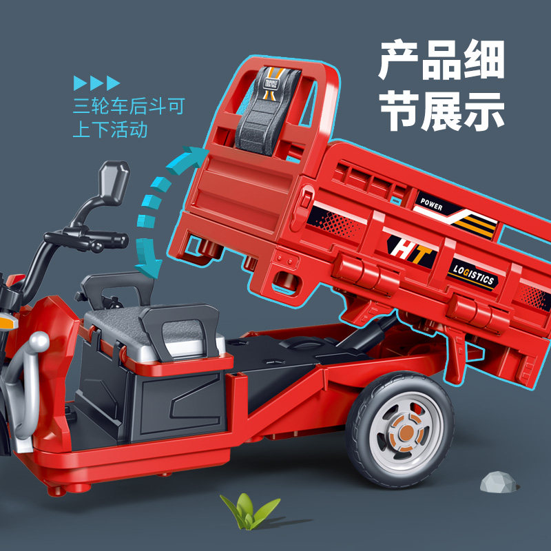 大号合金三轮车玩具儿童仿真三蹦子拉货电动快递车男孩摩托车模型