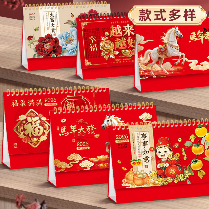 2026年台历定制特大号中国红红色喜庆三角台历制作企业礼品日历订制定做商务台历2025年桌面马年新款创意月历