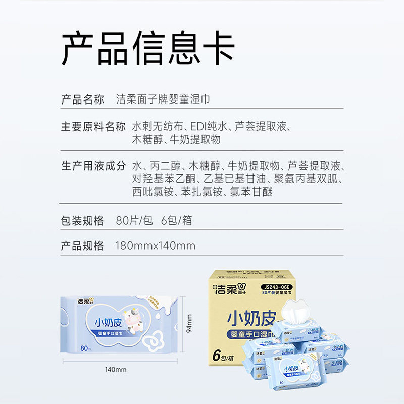 洁柔小奶皮婴儿湿巾纸80片装手口母婴可用实惠成人儿童便捷
