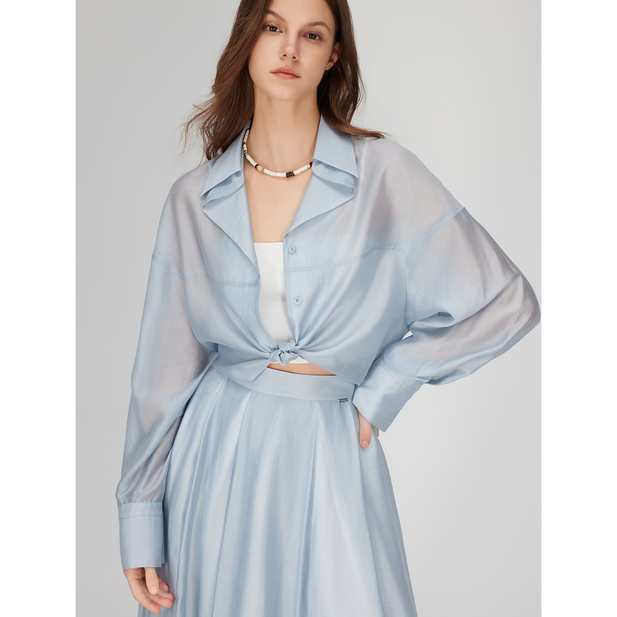 ELLE白色法式高级感宽松短款衬衫女2025夏季新款气质小众长袖上衣