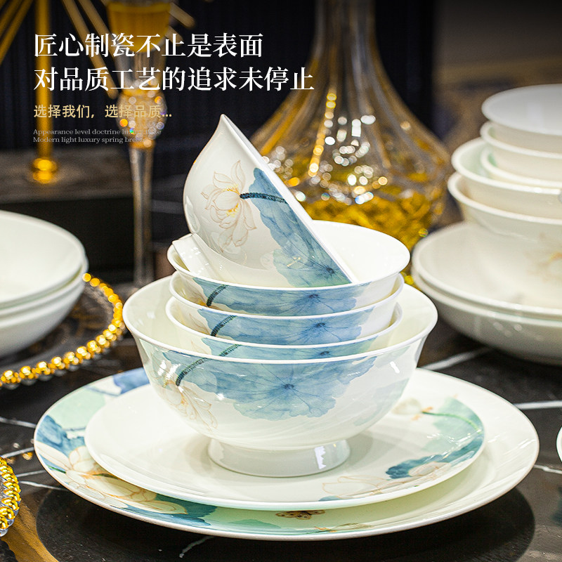 2025新款碗碟套装家用中式陶瓷器轻奢高级感骨瓷餐具乔迁碗盘子筷