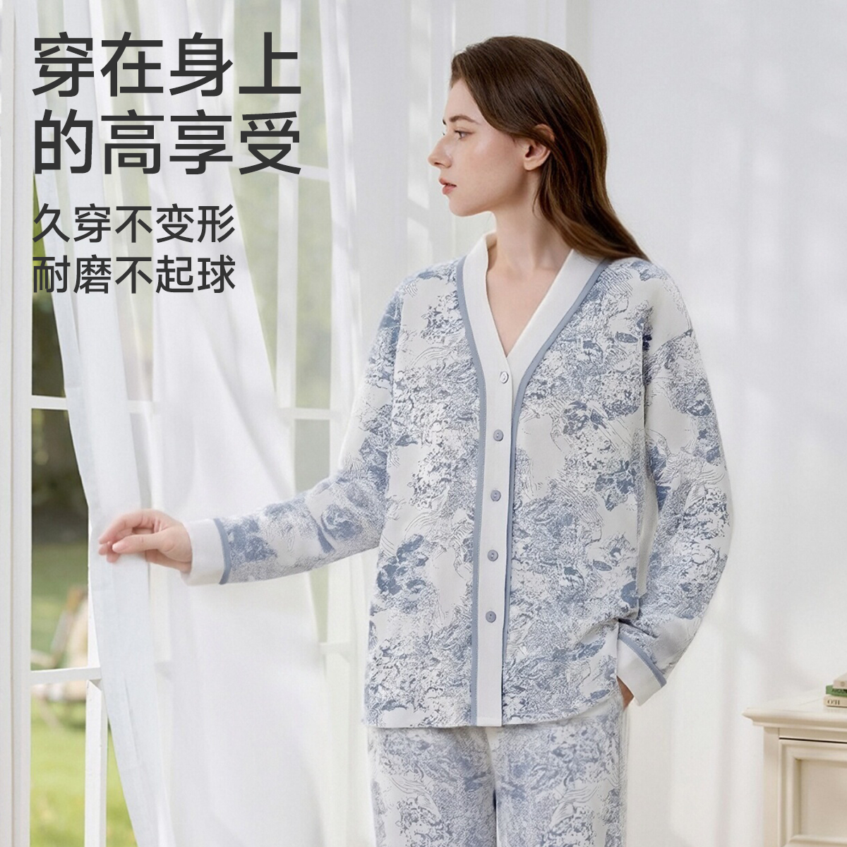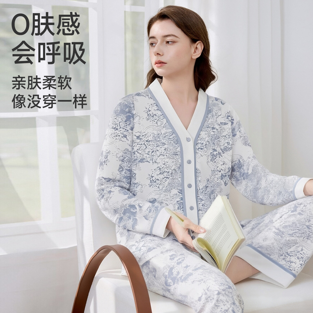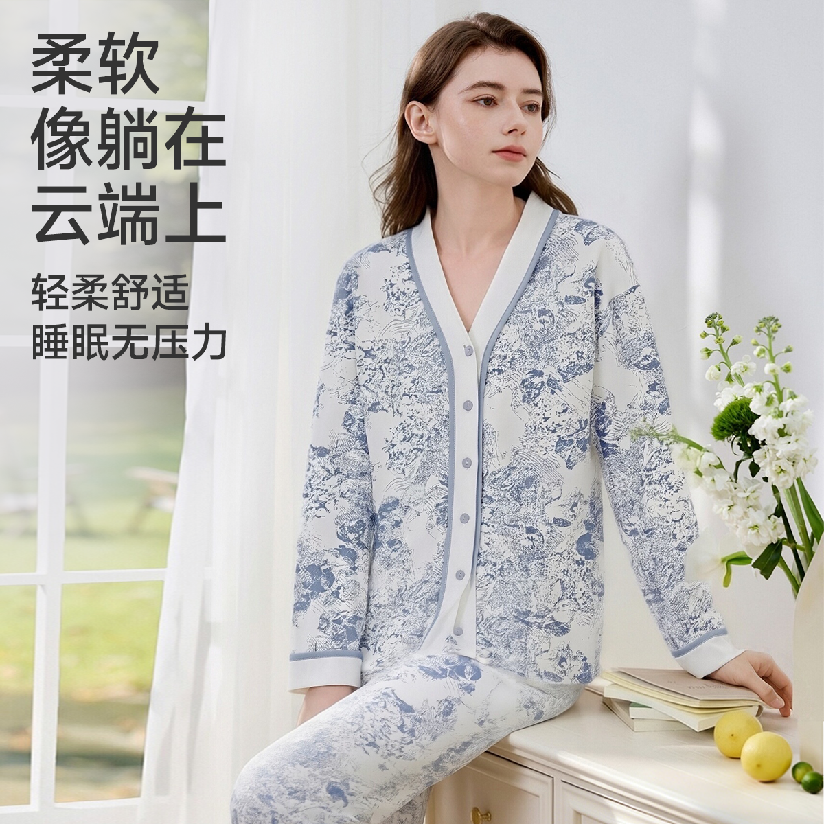 cutelife【轻羽】月子服女士长袖家居服孕妇竹棉哺乳睡衣秋冬套装