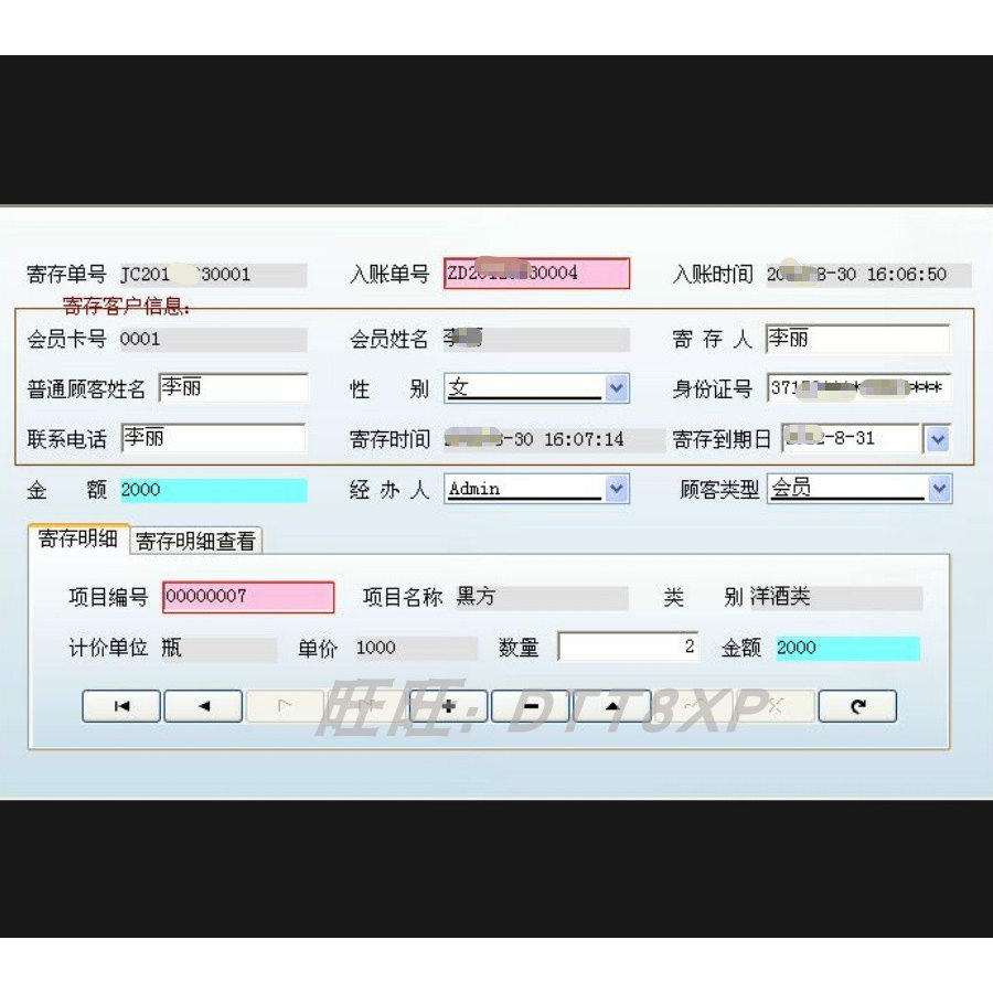 酒吧吧台寄存提取会员管理办公软件商品采购销售缺货提醒消费查询
