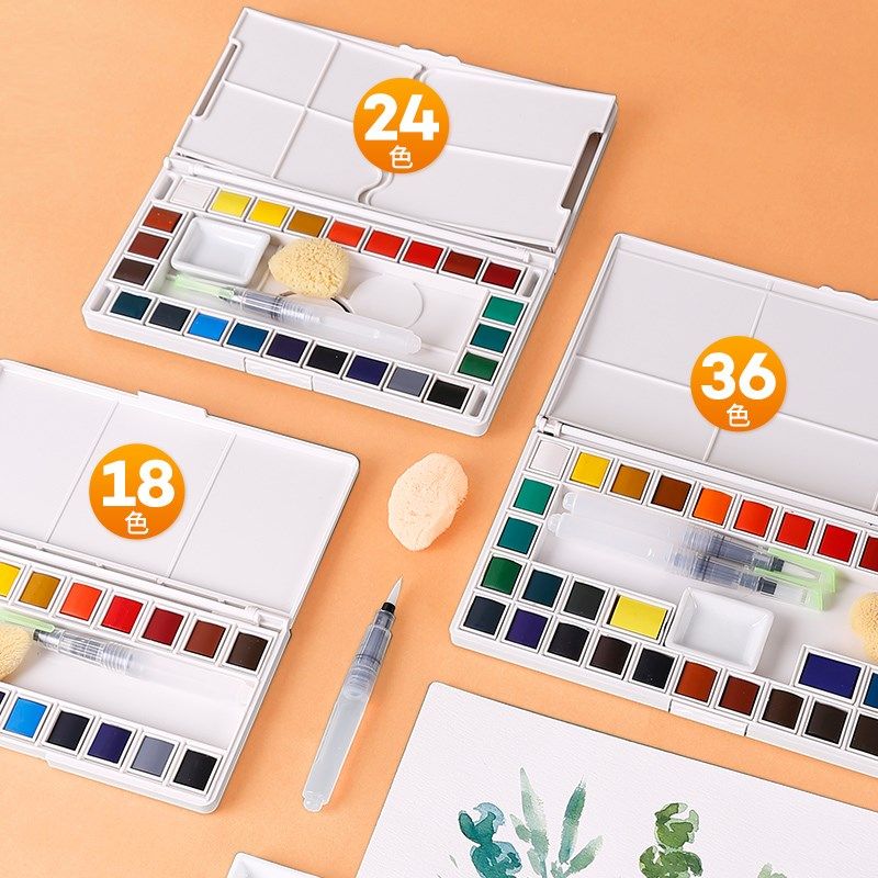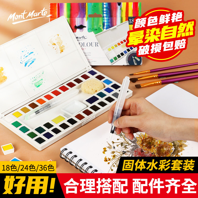 蒙玛特 固体水彩套装 粉饼颜料套装 18/24/36L色手绘儿童颜料 自