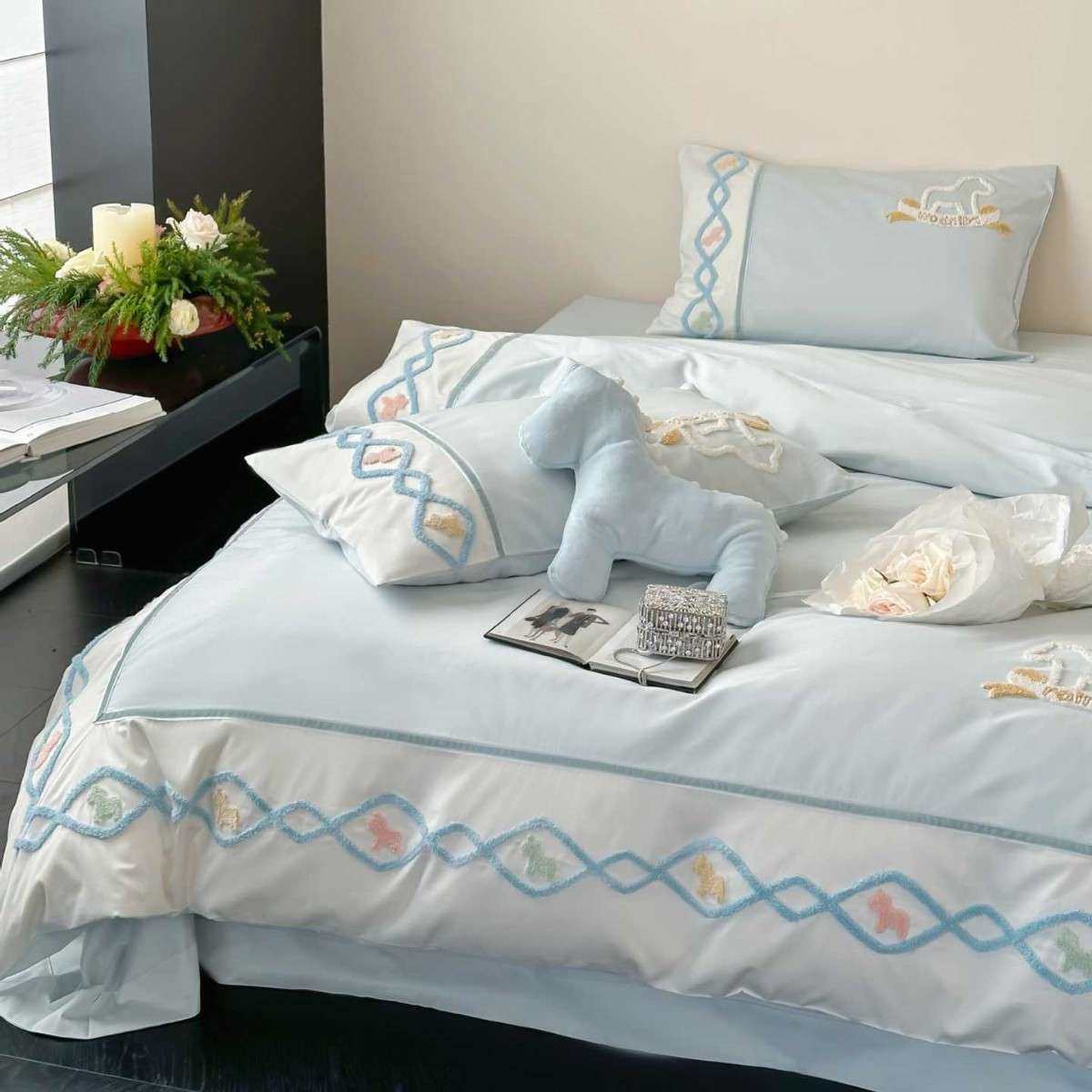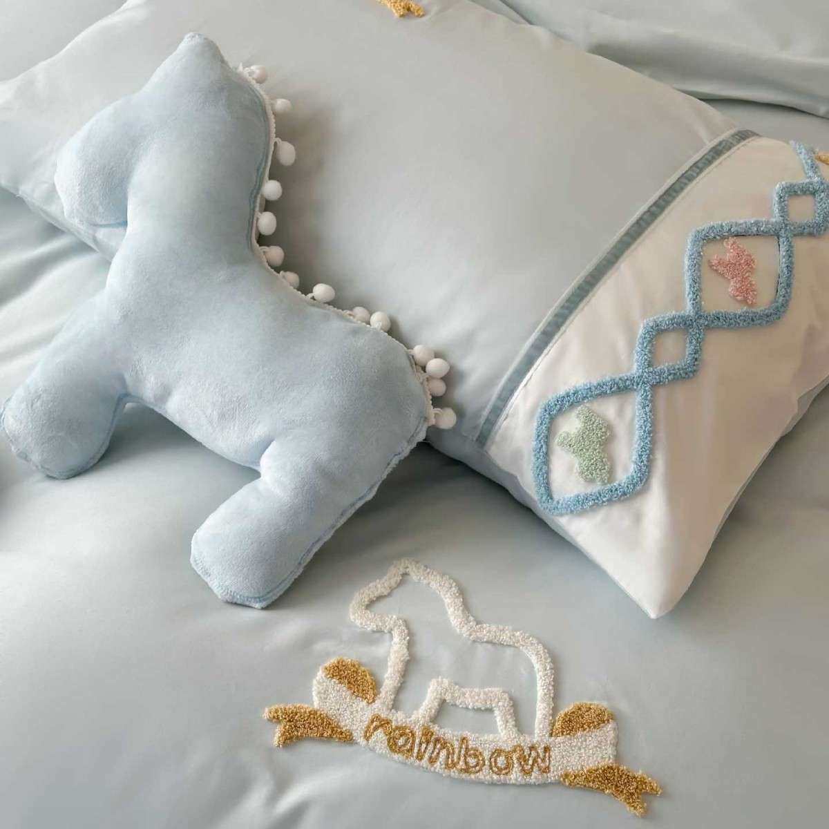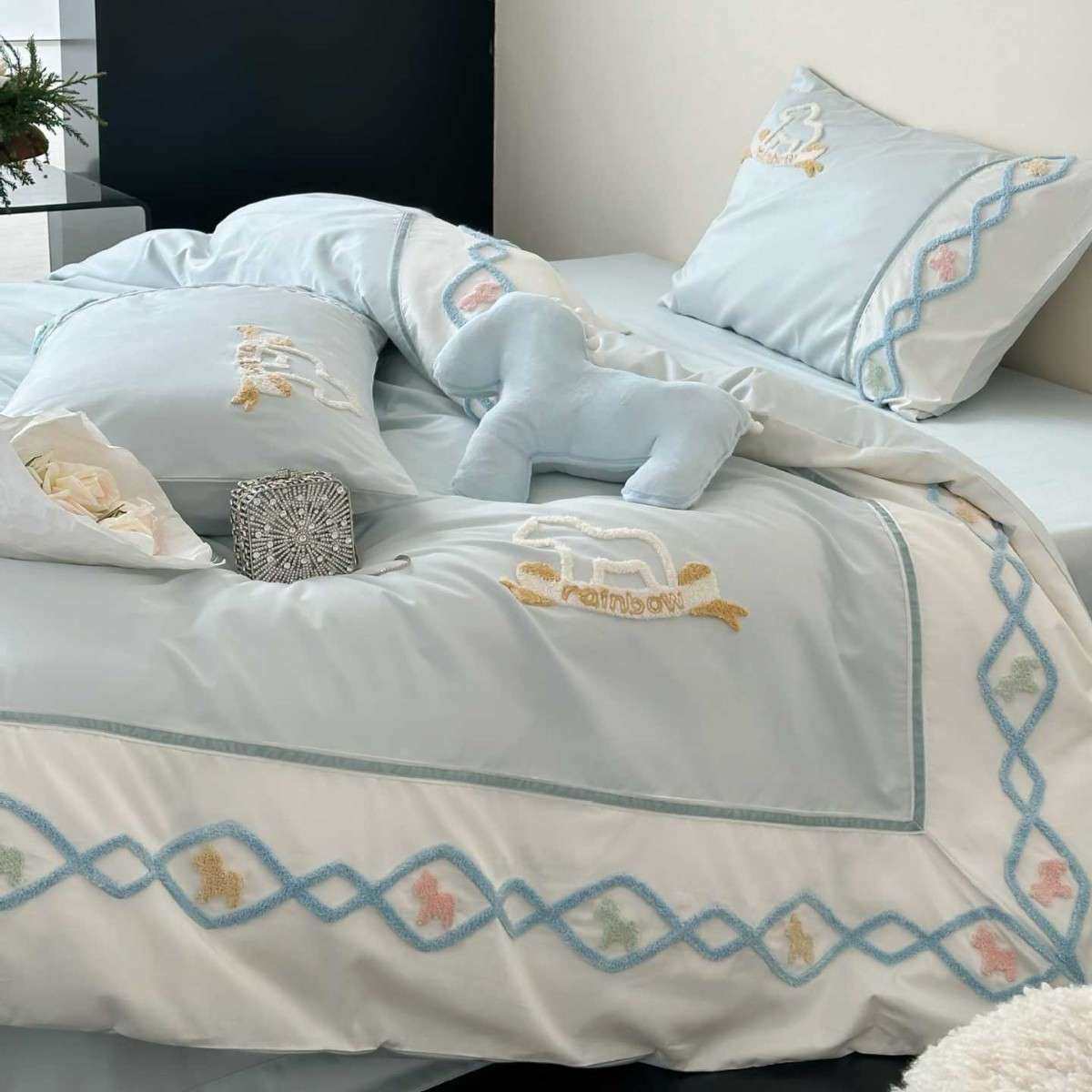 木马毛巾绣纯棉男孩女孩蓝粉配色床单被套可爱儿童长绒棉四件套