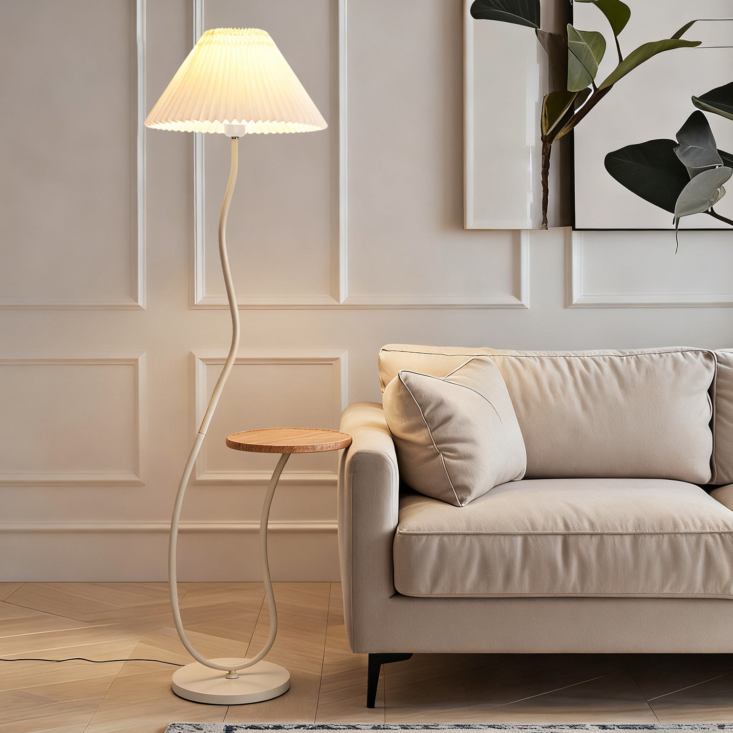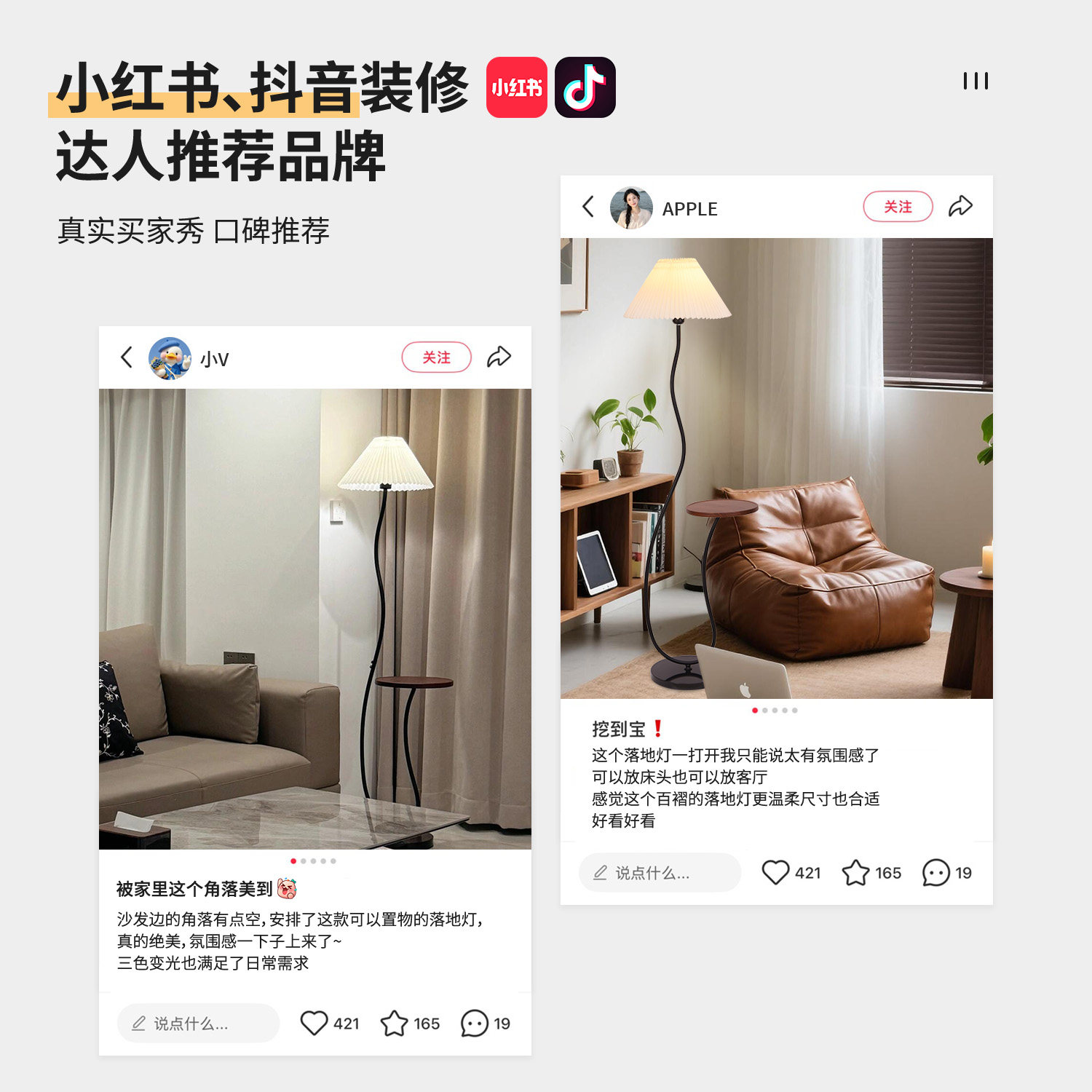 百褶落地灯置物架客厅高级感卧室书房沙发旁奶油风落地氛围灯
