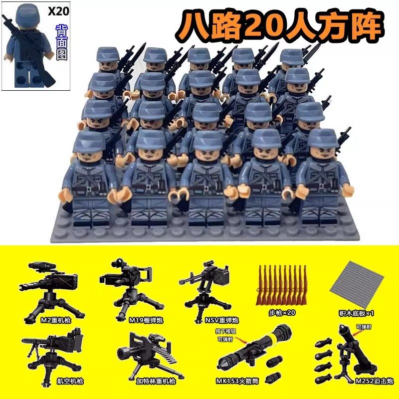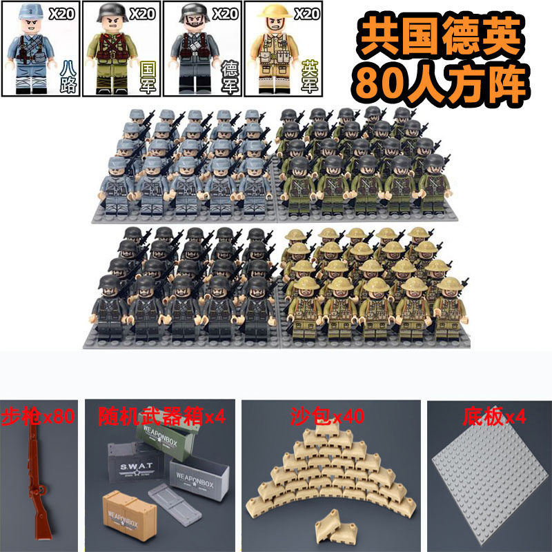 二战军事积木人仔八路军德美苏法军团士兵小人偶男孩拼装儿童玩具