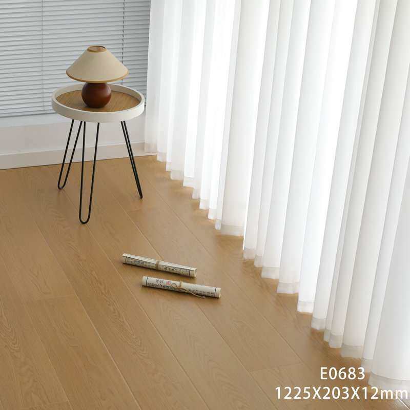 强化复合地板家用耐磨E1级12mm奶油风原木色地暖卧室地板厂家