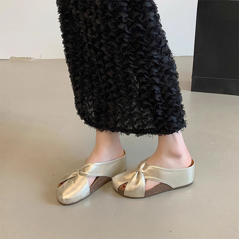 牛皮~内增高厚底拖鞋女夏外穿一脚蹬懒人鞋包头半拖小个子勃肯鞋