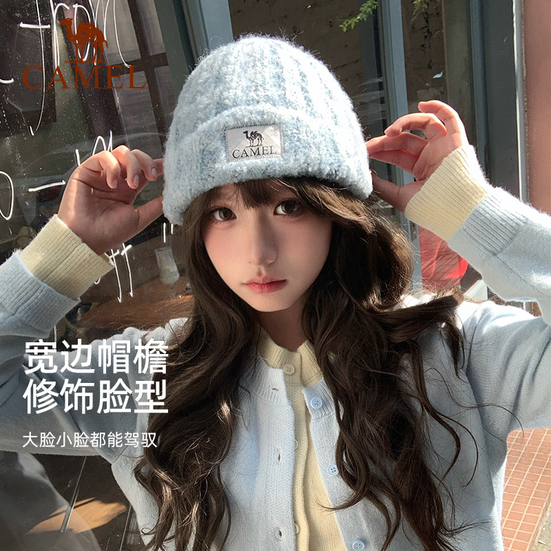 骆驼含羊毛针织帽冬季2025新款女冷帽高级感显脸小保暖防风毛线帽