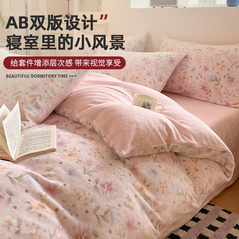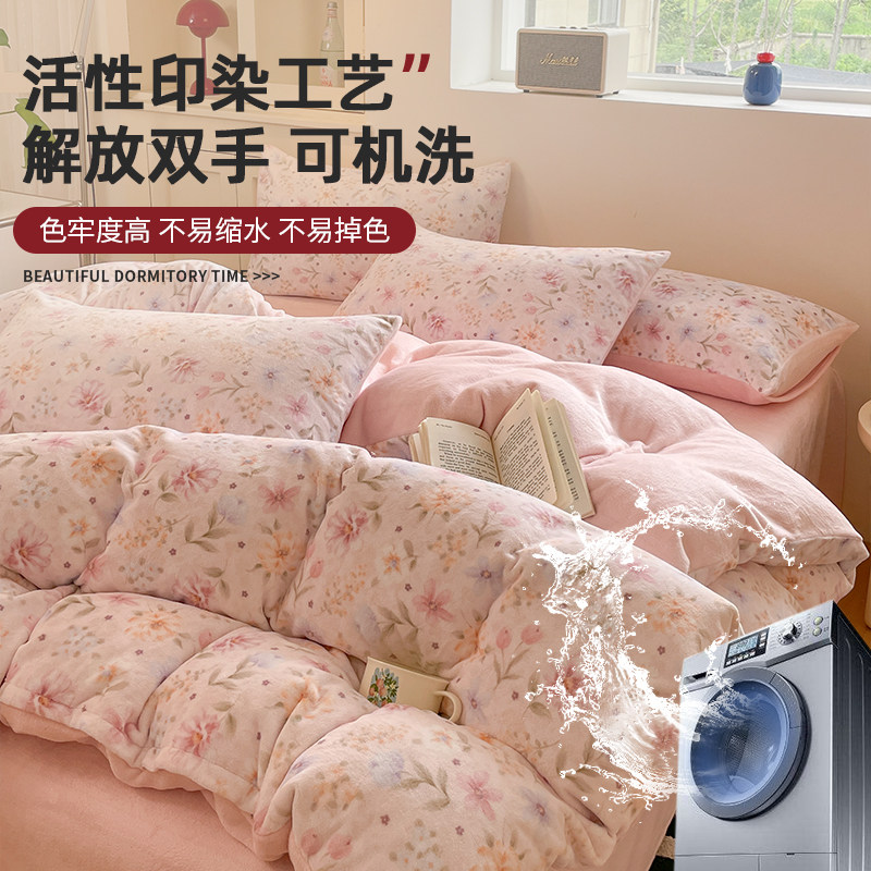 秋冬季加厚四件套牛奶绒被套床单双面加绒被罩床笠学生宿舍三件套