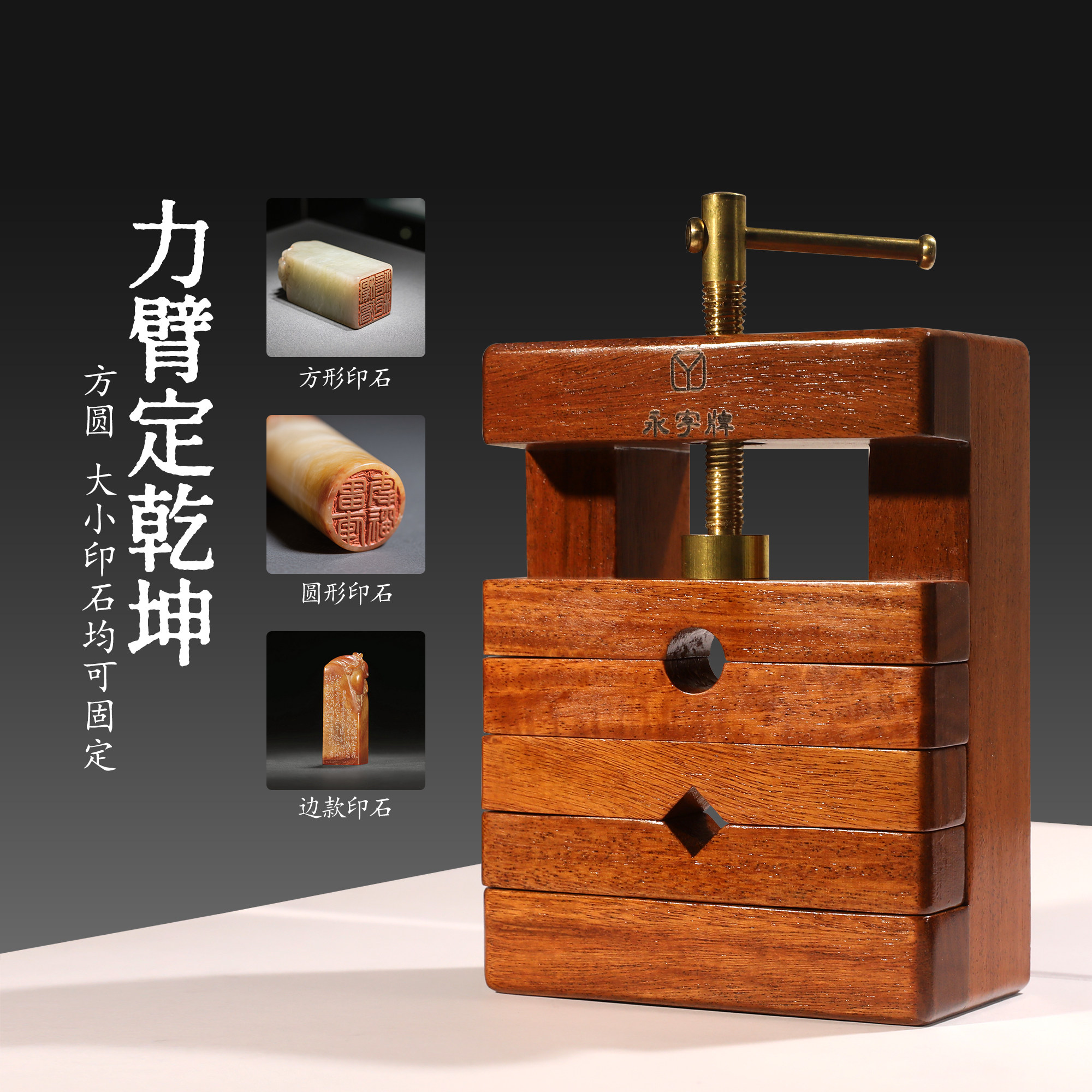 永字牌黑檀木印床印床篆刻工具刻床实木夹具石料印章刻章固定一体夹床夹具木印刻刀石雕刻刻印刻台印台