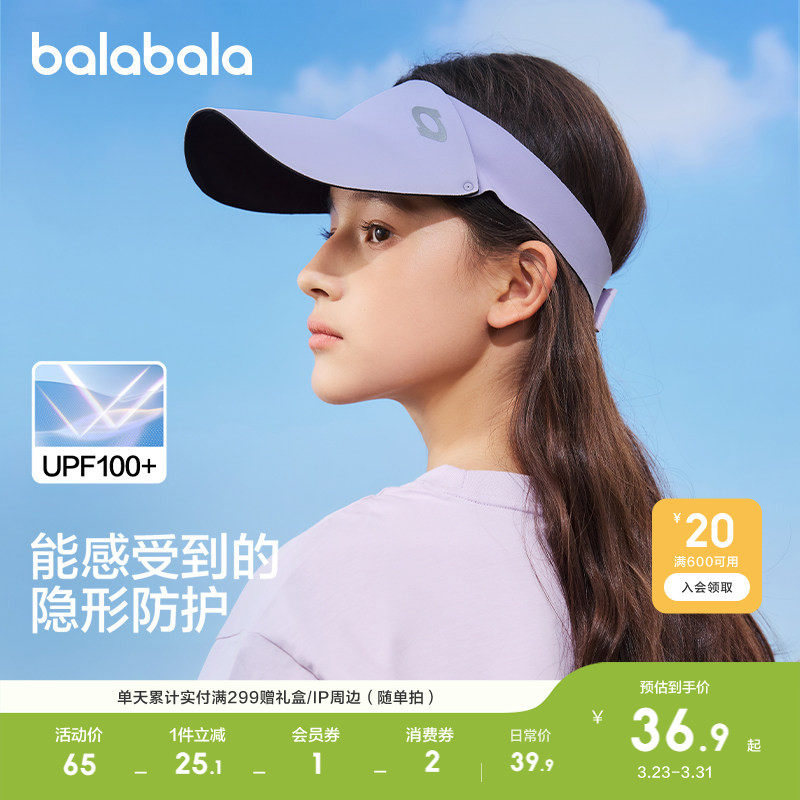 巴拉巴拉儿童帽子男女童空顶帽舒适防晒遮阳时尚简约潮酷萌趣儿童