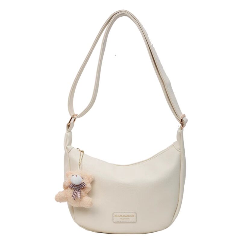 艾程包包女时尚通勤单肩包休闲百搭大容量斜挎饺子包挎包大气白色