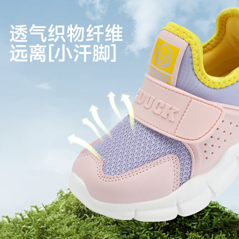 BDuck小黄鸭童鞋2025春季新款女童网面透气运动鞋软底厚底休闲鞋