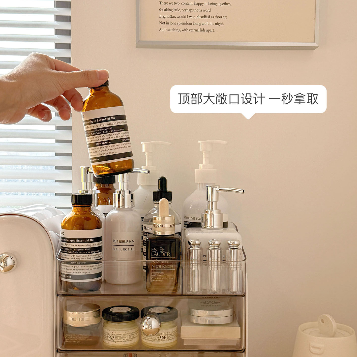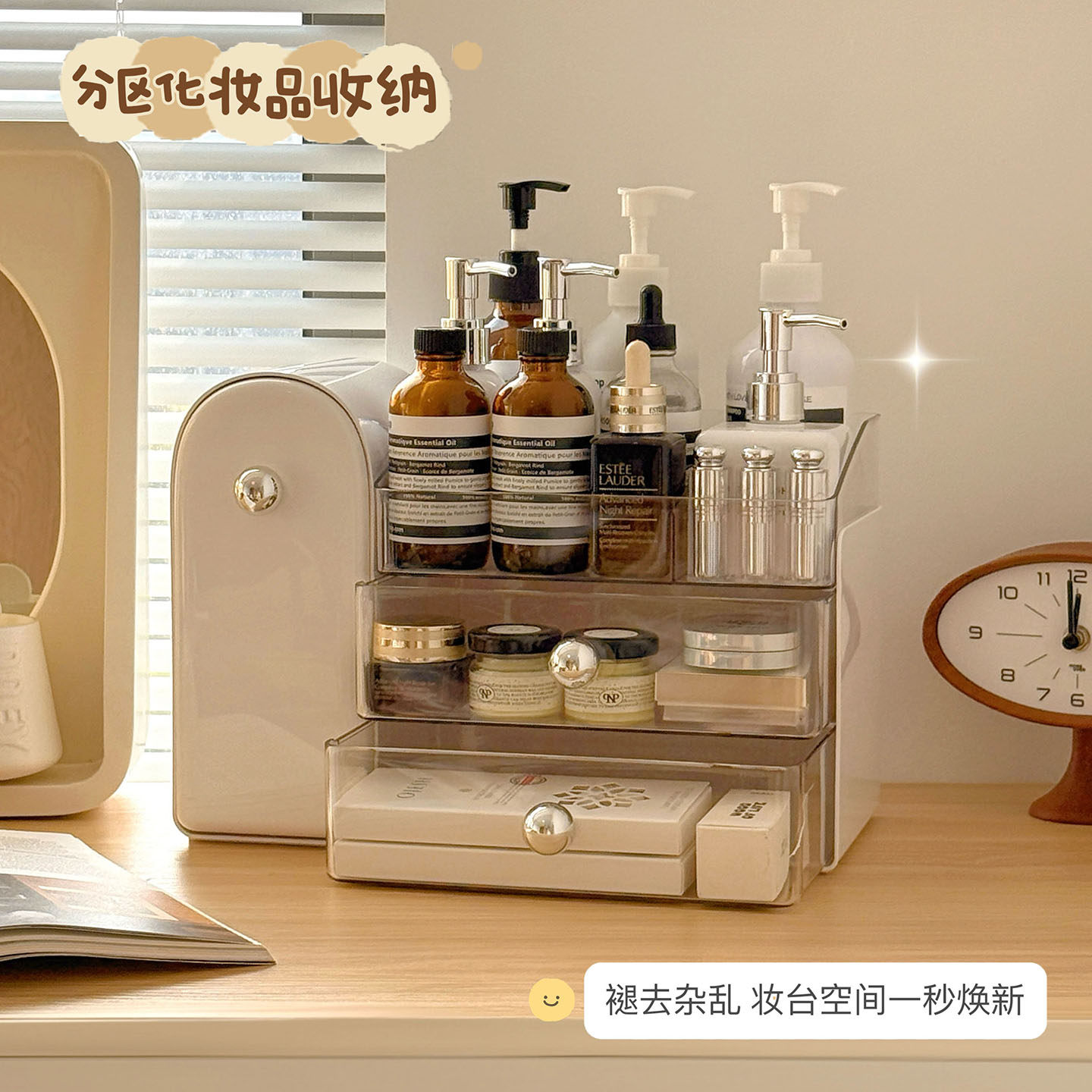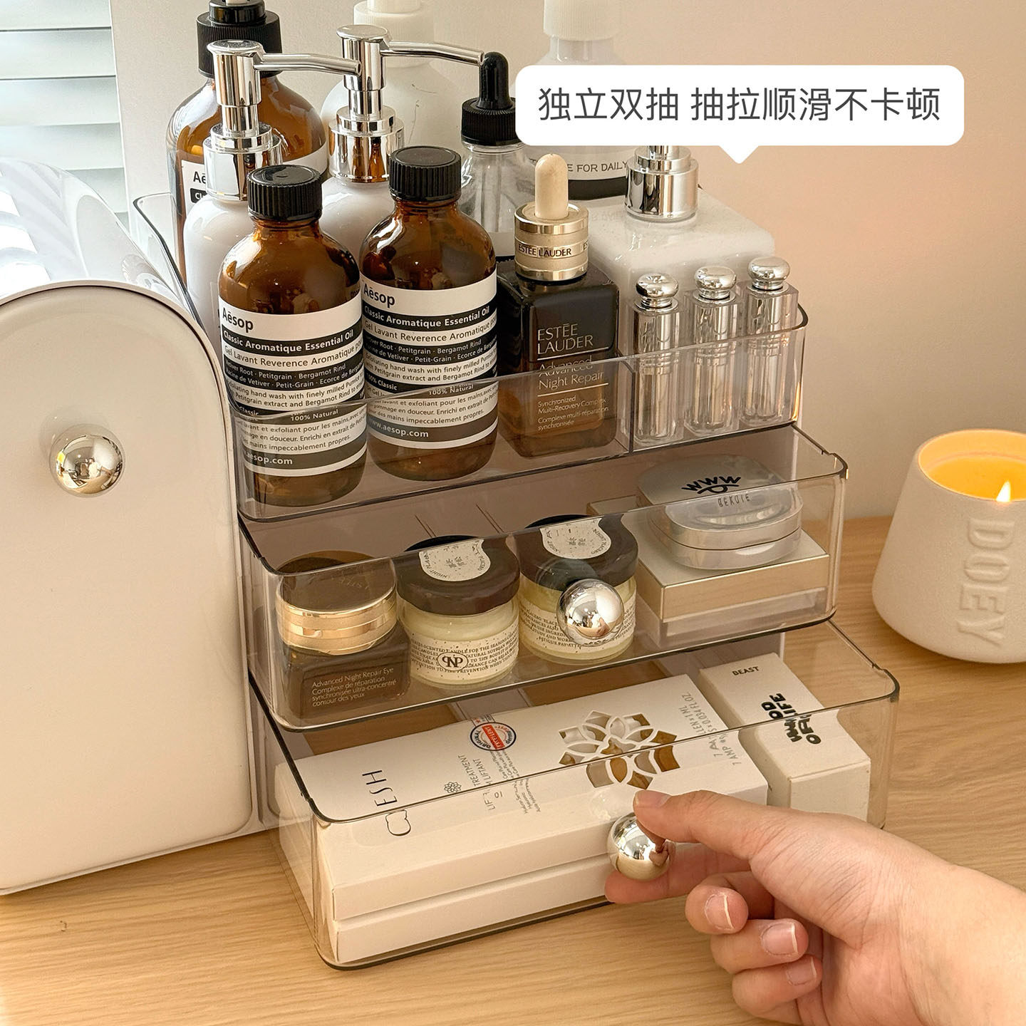化妆品收纳盒桌面防尘抽屉式高级感口红整理箱梳妆台护肤品置物架